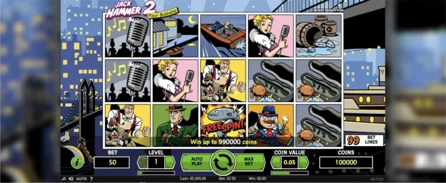 Pokračování úžasné detektivky, ve výherním automatu Jack Hammer 2 je vaší misí osvobodit zpěváčku z rukou superpadoucha! Vyhrajte až 990 000 mincí a prokažte se jako jeden z nejlepších detektivů 50. let.