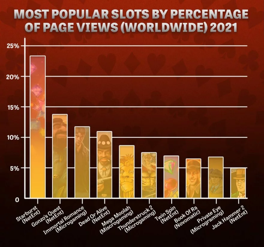 Rok 2021 byl také skvělým rokem pro výherní automaty, přičemž většina favoritů z roku 2020 zůstala na seznamu nejlepších hazardních her pro rok 2021, pokud jde o mezinárodní publikum. Alespoň tak hovoří data webu johnslots.com.