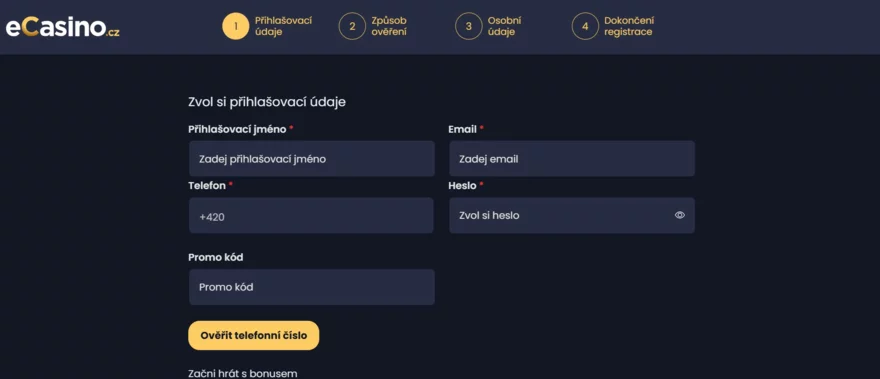 Registrace a ověření účtu v eCasino je rychlá a bezpečná. Stačí pár minut – zadat údaje, ověřit totožnost přes BankID nebo Czech POINT a připojit bankovní účet. Jakmile to dokončíte, čeká vás nejen standardní balíček 50 spinů, ale i bonus pro čtenáře tohoto článku. Nezapomeňte při registraci zadat promo kód, který vám otevře dveře k extra zatočením.