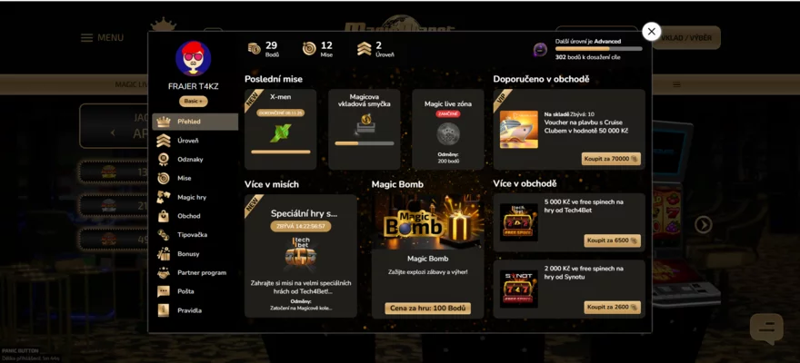 Podivali jsme se co nám casino nabízí nového, bylo tu k dispozici velké množství aktulnich bonusů. Podívali jsme do uplně nové kategorie, je to jedna z novinek na casinu a rozhodli jsme se že jí vyzkoušíme za body zde můžeme nakupovat freespiny. Program Magic + je specialní kategorie kde lze plnit mise a různé ukoli za které se dají získat hodnotné odměny. Dojdi se podívat na casino Magic Planetnajdeš tam velké mznoštví novinek, jak her tak i funkcí.
