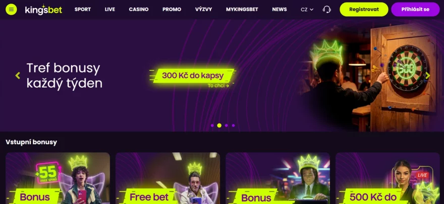 Pokud už u Kingsbetu jste, šup na jejich sociální sítě – třeba tam ten kód právě přistál! A pokud ne, registrace vám kromě šance na tajný bonus přinese i štědrou vstupní odměnu (555 Kč + 55 FS).