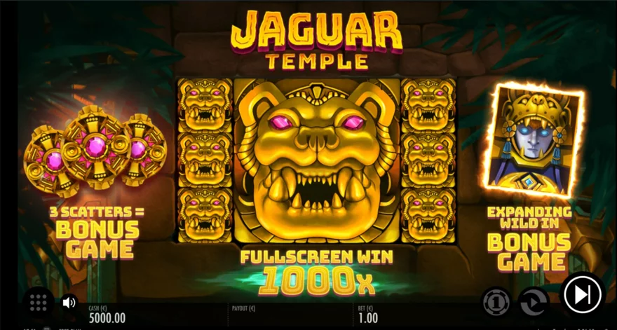 ,,Jaguar Temple je takovej ten klasickej automat, co se tváří jako velký dobrodružství v džungli, ale ve finále je to prostě o točení válcema a čekání, co z toho vyleze. Grafika je pěkná, taková ta “zlatá civilizace, co se ztratila v pralese” vibe, a samozřejmě jaguáři na každým kroku. Nic světobornýho, ale neurazí. Hudba je spíš do pozadí. Hratelnost? Jednoduchá, což je někdy plus. Co potěší, jsou rozšiřující se wild symboly a free spiny, díky kterým se dá něco solidního chytit. Ale upřímně není to úplně automat, co by mě přikoval na hodiny. Spíš si párkrát zatočím a jdu dál."