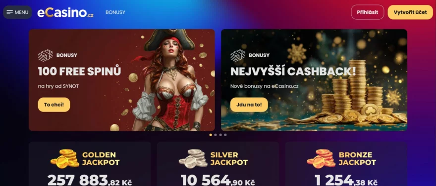 eCasino.cz nabízí hráčům atraktivní zážitky díky dlouholetým zkušenostem společnosti Euro Queen a.s. Po registraci obdržíte 200 free spinů a až 35 000 Kč v bonusech za první tři vklady, což je skvělý způsob, jak se seznámit s nabídkou. Každý týden navíc přibývají nové bonusy, což udržuje zábavu na vysoké úrovni a motivuje hráče k dalšímu hraní. Jackpoty jsou dostupné ve všech hrách, což zvyšuje napětí a šanci na výhru.